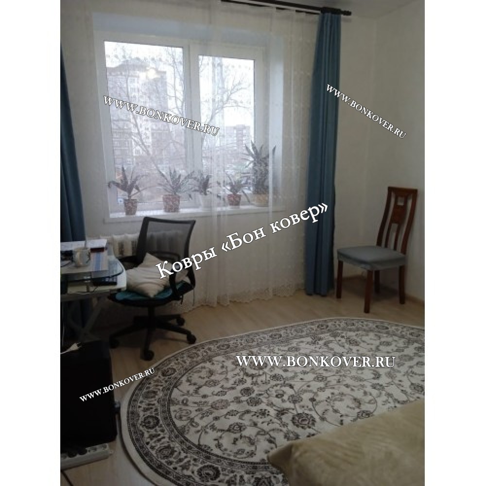 Элегантный Российский Овальный Ковер Белый Дизайн 23860 наполняет интерьер гостиной теплом и уютом, гармонично сочетает в себе изящество и красоту. Он выполнен из износостойких материалов, комфортный и долговечный.