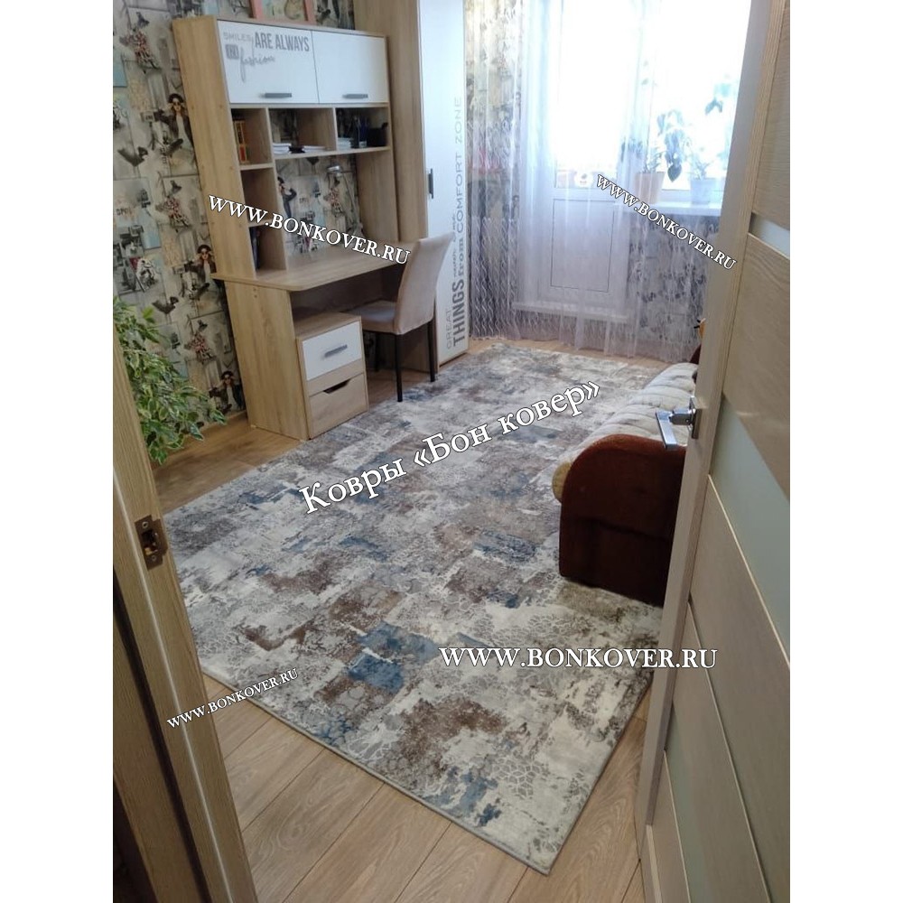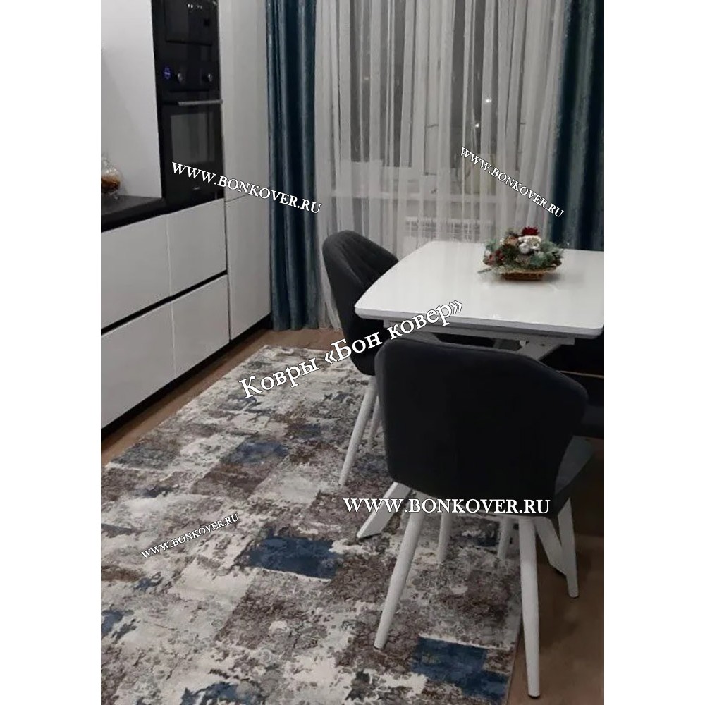 Импозантный Турецкий Ковер Для Гостиной Дизайн 25 Синий с Серым Прямоугольный наполняет интерьер жилого пространства теплом и уютом, гармонично сочетает в себе изящество и стиль. Он выполнен из современных материалов, комфортный и долговечный.