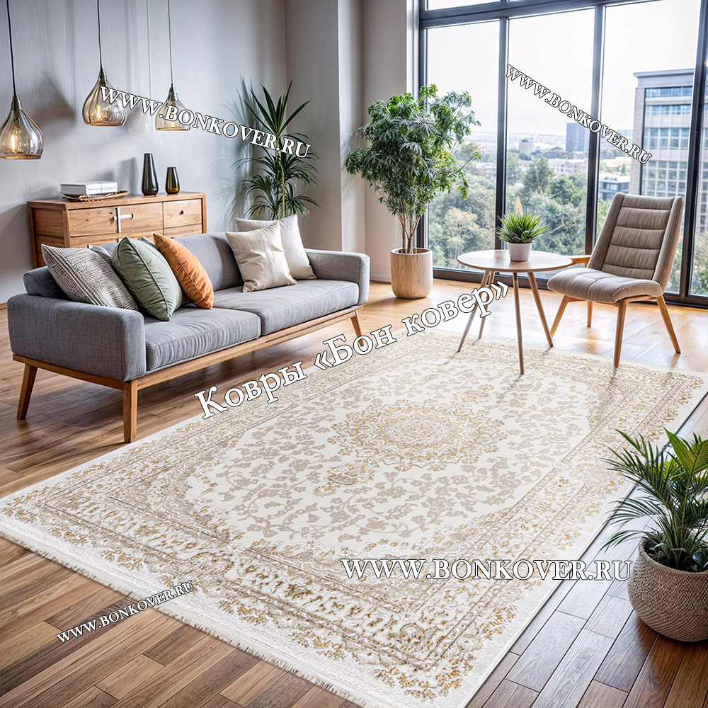 Импозантный Турецкий Ковер Для Гостиной Медальон Дизайн 05 наполняет интерьер помещения теплом и уютом, гармонично сочетает в себе изящество и стиль. Он создан из современных материалов, прочный и долговечный.